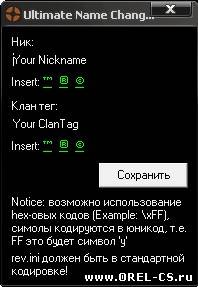 Не секрет, что в последних версиях cs source no steam ник через консоль сменить не удаётся, а из настроек этот пункт убрали. Что же делать владельцам no steam клиента css, скажем, v64. Решение есть! Это программа Ultimate Name Changer, с помощью которой вы без труда сможете изменить свой ник и добавить клан-тег. Вам, всего лишь, необходимо установить файл .exe в папку с игрой, туда, где находится файл rev.ini и запустить прогу.